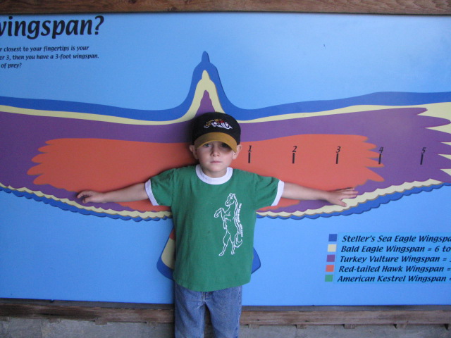 Eli's "wing span" was the size of a red-tailed hawk. He thought that was pretty cool since he enjoys watching hawks fly around our farm.