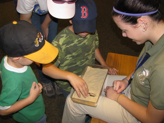 Another zookeeper was asking the kids to hunt for a snake in the sandbox. Notice who isn't in the photo? Me!