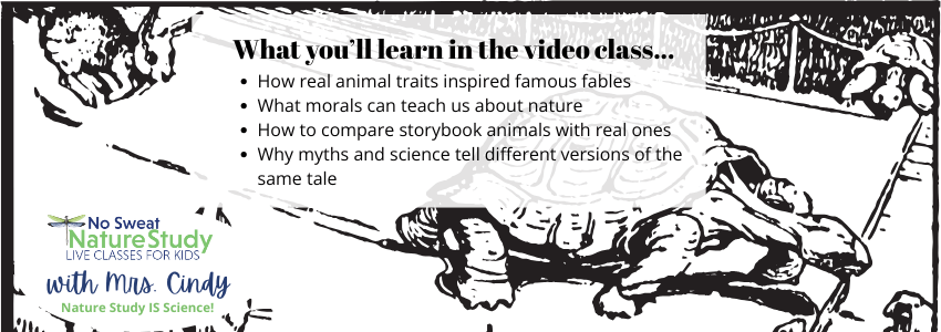There’s a special companion No Sweat Nature Study video class that continues the fun of this podcast episode. During the lesson, 1st-8th graders take a closer look at some of Aesop’s most familiar fables and discover how real animal behaviors reflect the morals those stories teach. With guided discussion, sketching opportunities, and a bit of scientific wonder, the class brings both fables and nature to life.