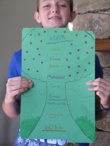 Here are some photos from our first unit culminating projects based on Creation and the flood. At the end of each unit, Diana Waring has included a huge variety of project ideas. Your children choose whatever most floats their boat as far as topic and learning style. This time around, Mahayla chose to create a poster of the lineage of the Seed line up to the point of Noah and a demonstration with research about the effects of the world-wide flood.