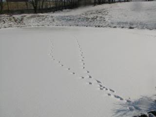 Dog! Our dogs love to walk on the frozen pond.