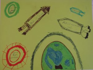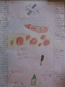 3.2 – p.61-66 – layers of the atmosphere internet research and draw poster (NaturExplorers activity!  The second photo above is his poster.)