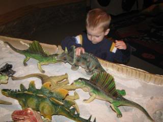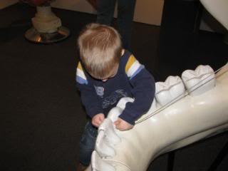 Eli liked playing in the sand with dinosaur models, while the big kids enjoyed the real dinosaur skeletons.