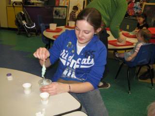 The museum was also offering a gooey experiment station the day we went. The children were able to play with Oobleck and make their own slime to bring home. Can you see all the little people sitting behind Mahayla? She felt pretty out of place, but handled the situation fine. All the other older children just happened to be in school! (Great for us!)