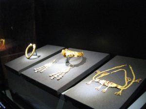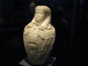 It wasn’t all idols, though! There were beautiful examples of hieroglyphics, ancient jewels, Egyptian, Greek and Roman coins, architecture, Egyptian canopic jars and much more. There were also short films highlighting the archaeological digs, legends of the time, and how Cleopatra has been immortalized throughout history.