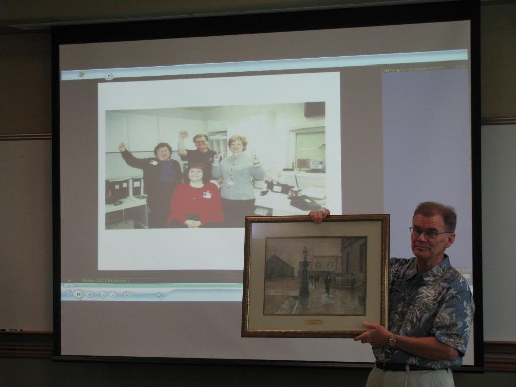 His department gave him a lovely catered dinner the evening before he retired. It was a complete surprise to him which made it even more fun. The day he retired, the hospital held a reception with cake, punch, a powerpoint presentation of his 30 years and two lovely Paul Sawyer prints. It was so neat to see how special he was to his coworkers, employees and friends!