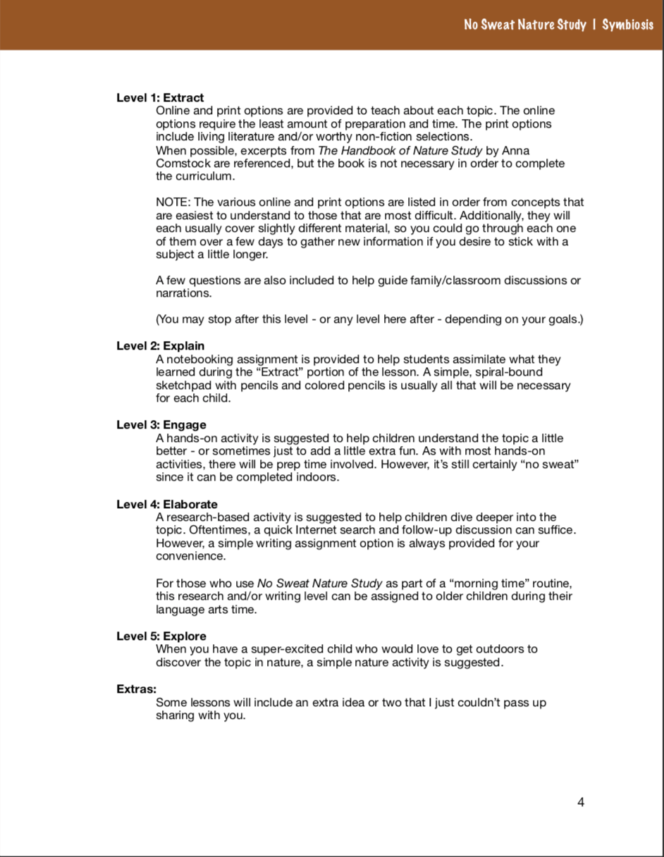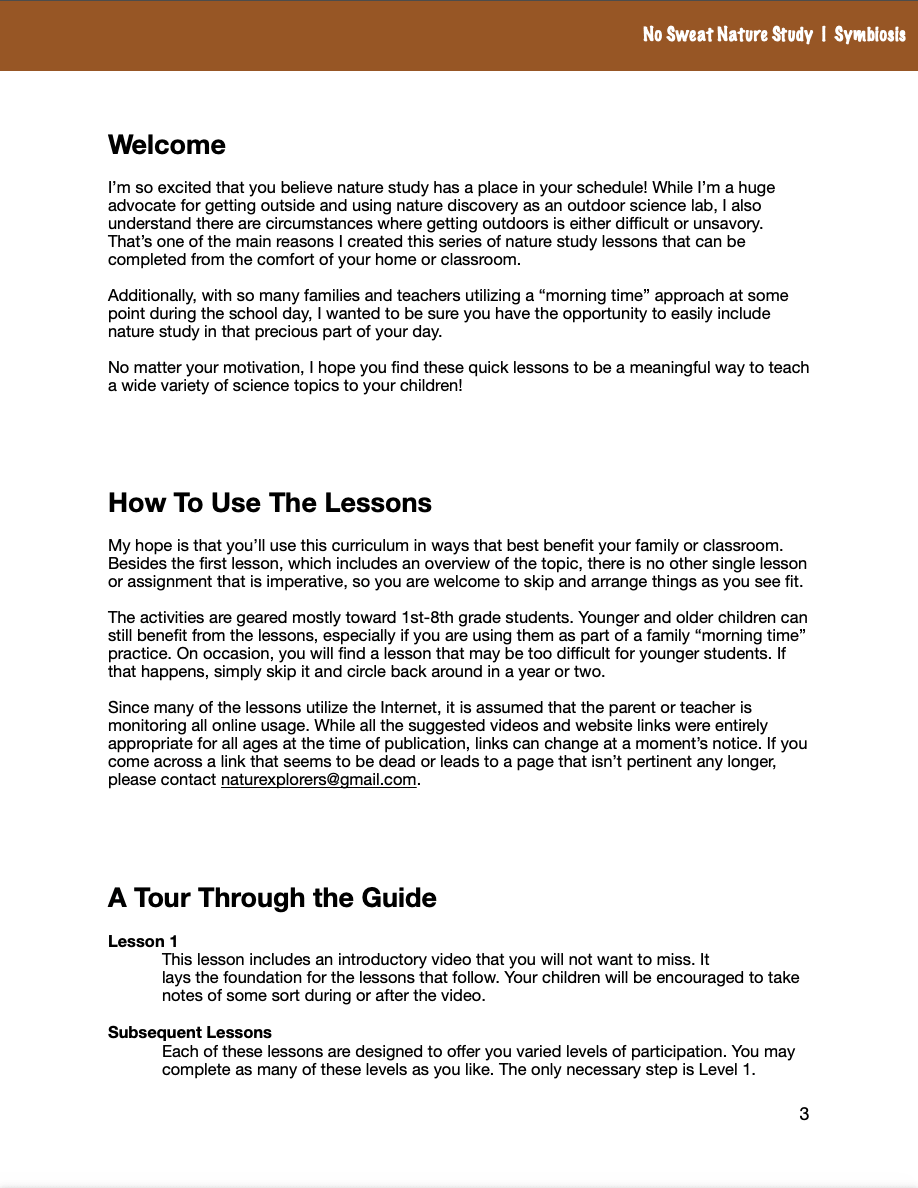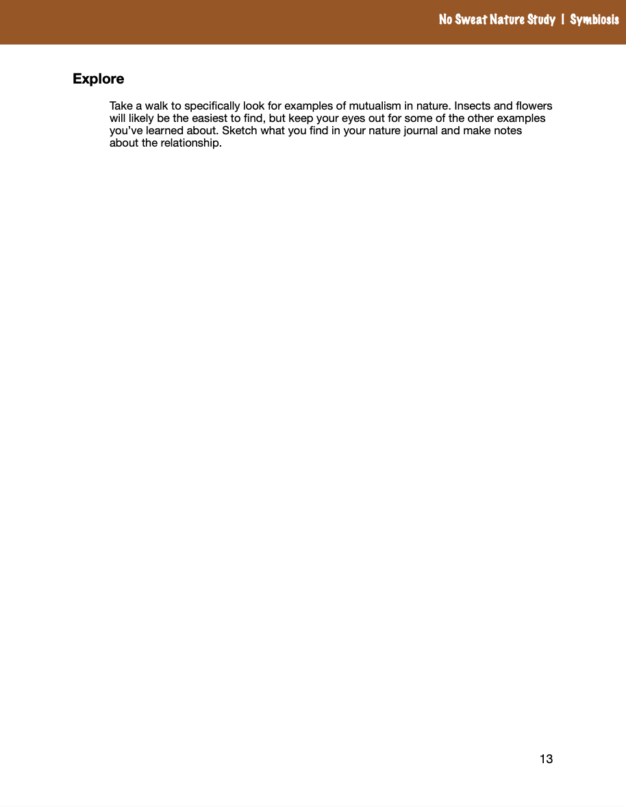 Kid-friendly text and YouTube videos do the teaching and follow-up activities accompany each of the symbiosis lessons. Children have opportunities to create nature journal pages, do simple research projects, and participate in hands-on activities. All are easy, optional, and easily tweaked if you’re teaching multiple ages.