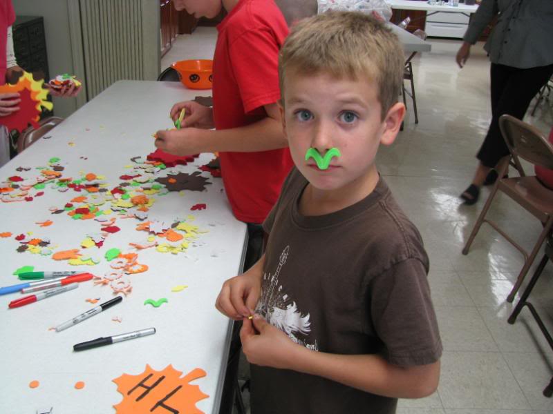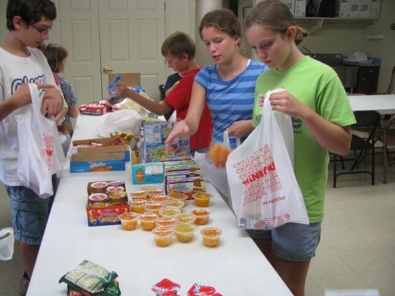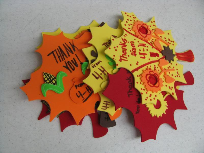 And finally, after our tea time and a history activity we headed to the first 4-H meeting of the year. Our homeschool 4-H club is designed mostly as a service-oriented club. The kids packed snack bags for needy children in the area, then worked on fall-themed thank you magnets for our local hospital workers.