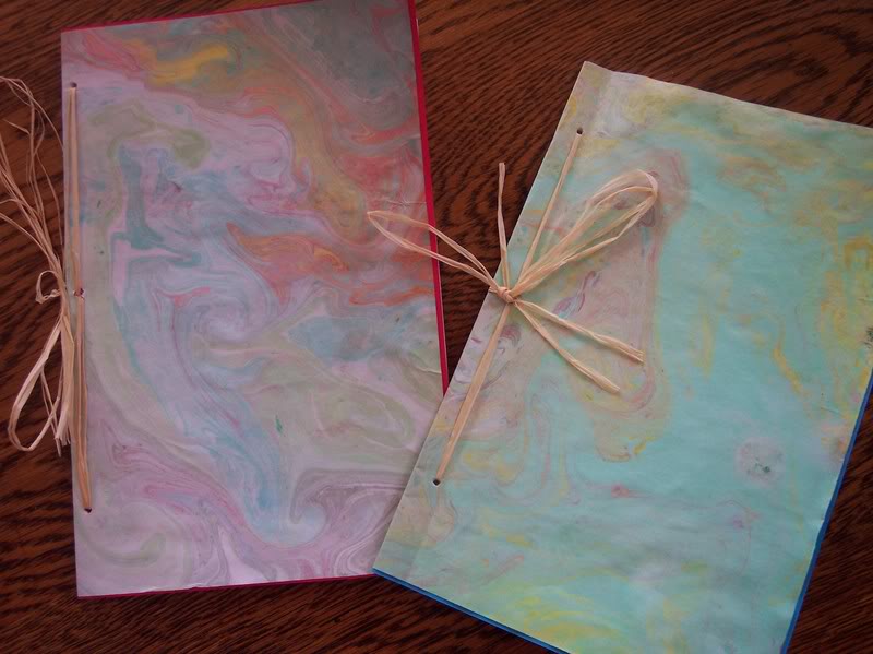 We learned the science behind suminagashi art (marbling paints) and created beautiful card covers. Inside the kids have written letters to both sets of grandparents for Grandparent’s Day. We finished them off with some raffia decoration and, voila, a great keepsake for the grandparents (and a nice science and writing lesson for school!)