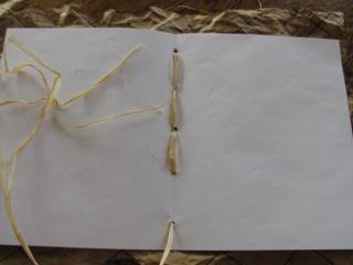 Use whatever string you desire (we used raffia) and whatever lacing method you desire to lace the pages together.