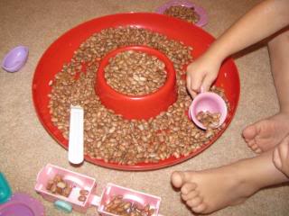 We pulled out the beans a lot! He loves to scoop, bury things and fill up all the wagons on his little tractors.