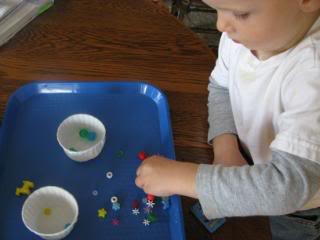 Foam stickers from the Dollar Tree are probably his most favorite thing to use right now.