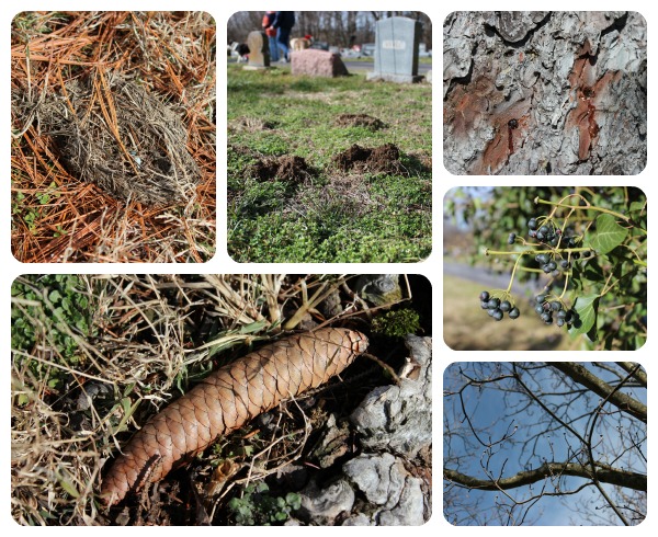 We took advantage of an unusually nice winter afternoon to catch up on some winter nature walking. You won’t believe how many wonderful nature treasures you can find in the winter! At our local cemetery we found tons…