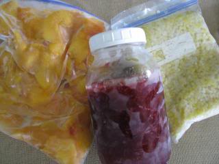 Frozen peaches, corn and strawberry jam – yum!