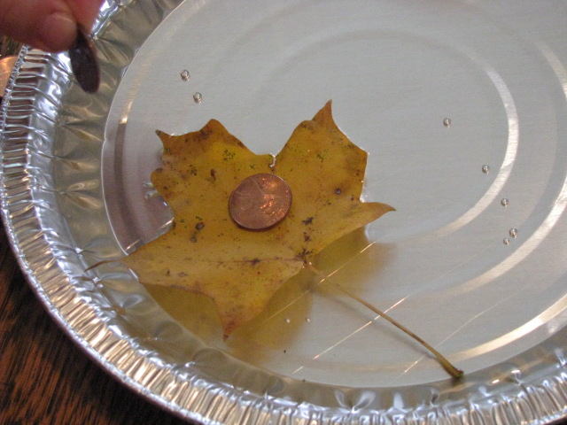 Float various leaf shapes on water then see which shapes can hold the most coins before sinking. This is also great fine motor skill practice.