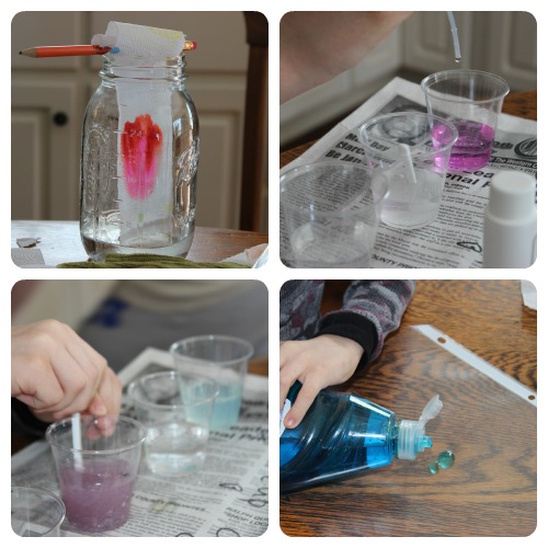 Using the book Molecules by Janice VanCleave(affiliate link), I chose about six experiments that reinforced some of our recent chemistry topics. Together, we made a list of all the materials we needed to gather so we could spend more time enjoying experiments than wandering around the house looking for our tools.