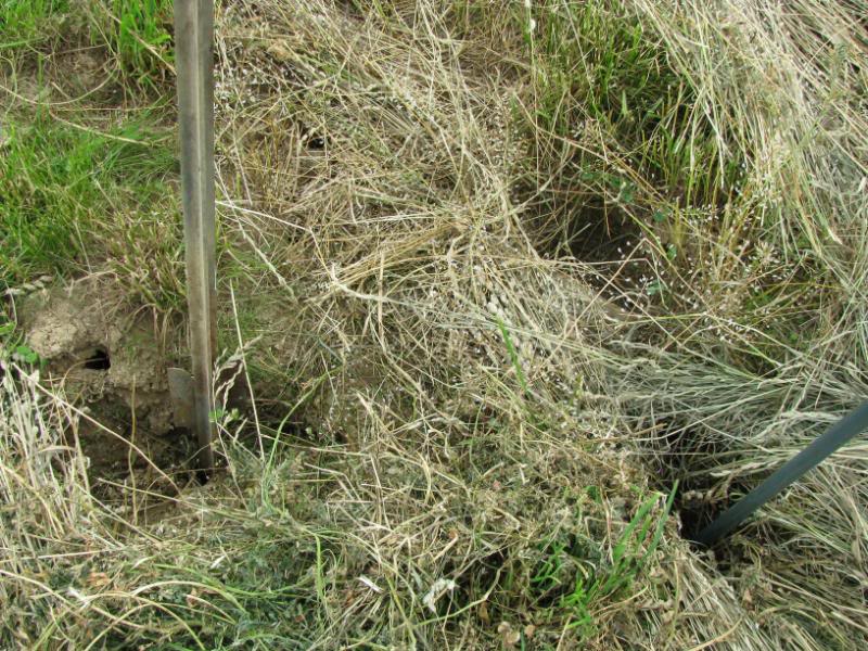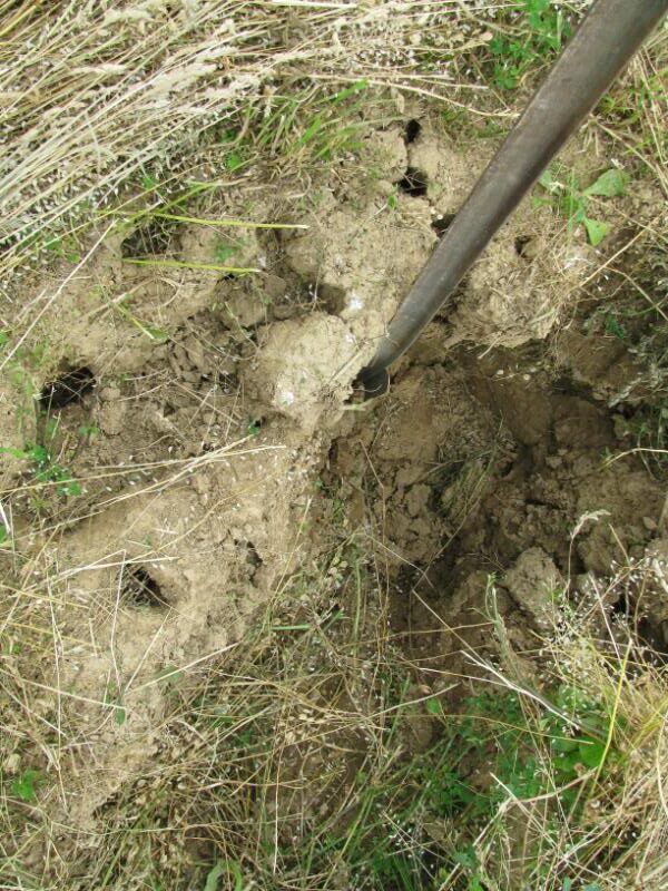 There are three main holes with several smaller holes all in the same area. As you can tell, hubby has put up markers to keep the tractors away!!