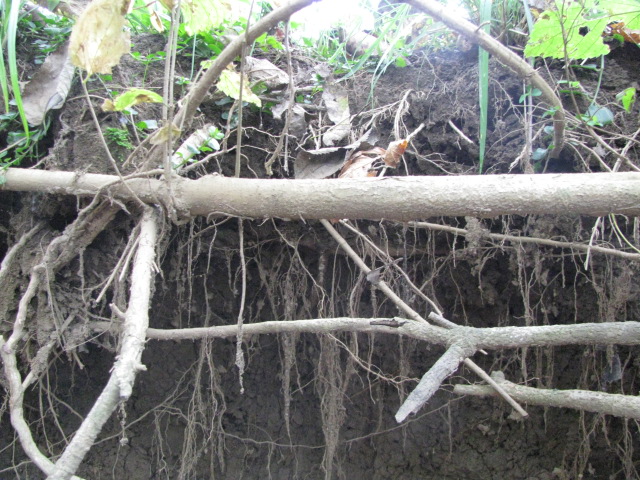 One super-interesting nature walk activity was finding the tap root (main root that grows straight down), lateral roots (large roots that grow outward or laterally) and fibrous roots (fine roots that grow downward from the lateral roots) of trees. We took a walk near a creek where we were likely to see root systems due to erosion. Our findings were way cool!
