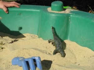 A dinosaur dig in the sandbox was a huge hit!