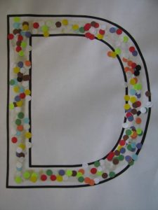 Eli loved punching holes in colored paper so we would have plenty of dots to fill our D template.