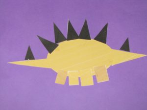 I cut out the pieces to this dinosaur and Eli glued them on the paper.