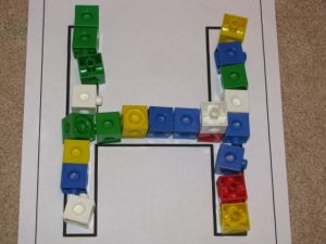 Eli filled the H with linking cubes.