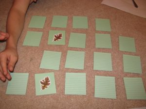 Not an H activity, but still fun – this is a homemade matching memory game was made from autumn leaf stickers and index cards.