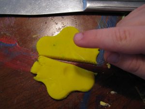 Cutting playdough shapes in half is an easy way to teach early fractions.