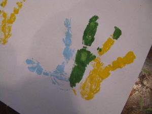 We painted hand after hand to make these colorful handprints.