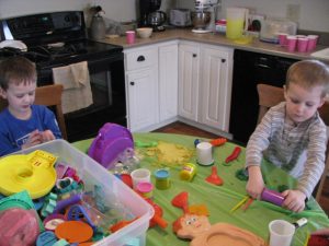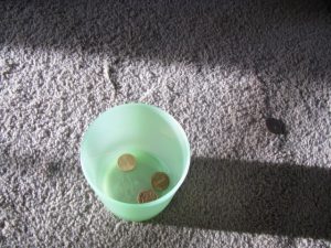 Have you ever played penny drop? It’s fun, especially when your preschooler is better than you!  Stand in a chair and try to drop pennies in a cup on the floor.  That’s all there is to it.
