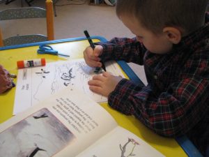 After reading a book about penguins, Eli colored a picture of a polar region that I found online…somewhere?