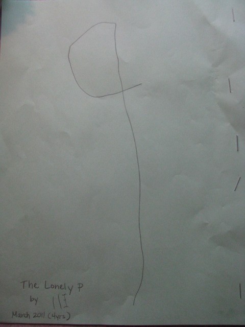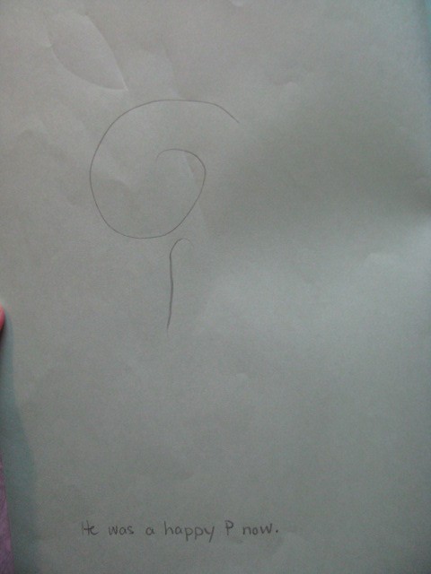 Eli wrote his very first story a few weeks ago called The Lonely P. I thought I’d post it for my new friends Kim Kautzer and Debbie Oldar, authors of WriteShop. They were our wonderful, WONDERFUL booth neighbors at the Midwest Homeschool Convention last week. They are such sweet mentors! Be sure to check out their writing programs!