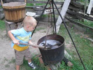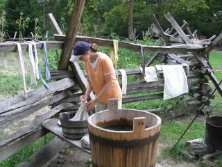 On the colonial farm, we washed clothes…