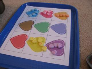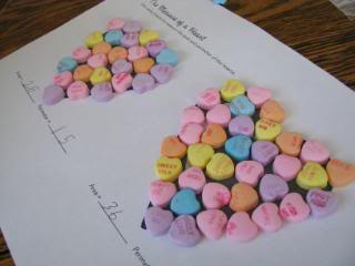 Caleb used the free printable The Measure of a Heart to determine area with candy hearts.